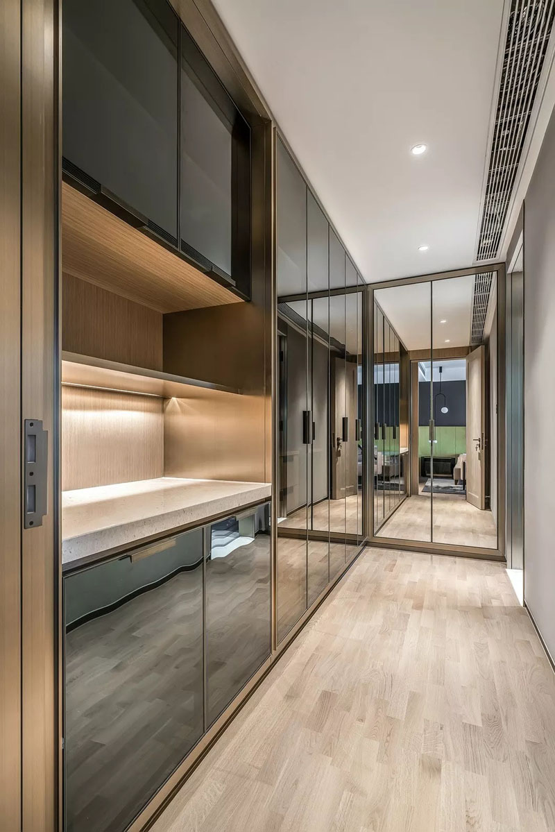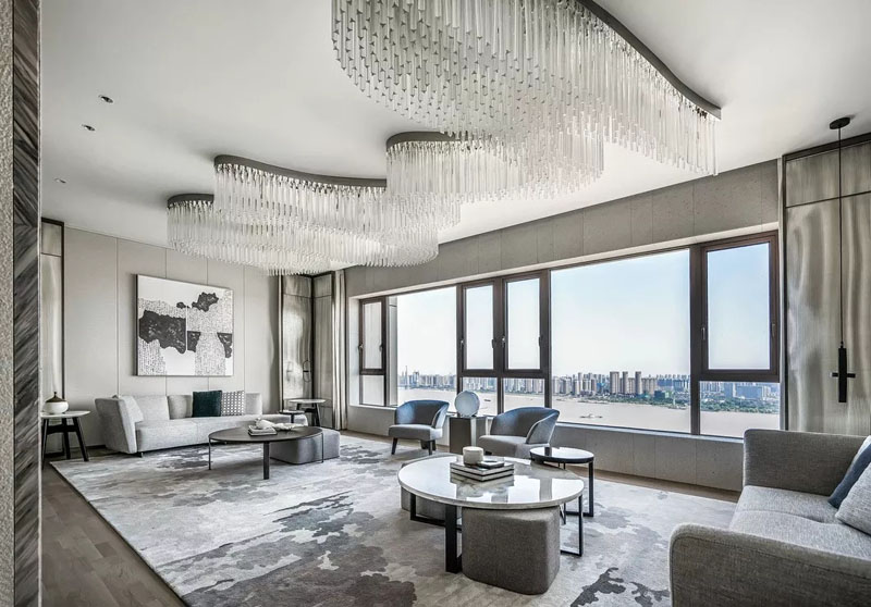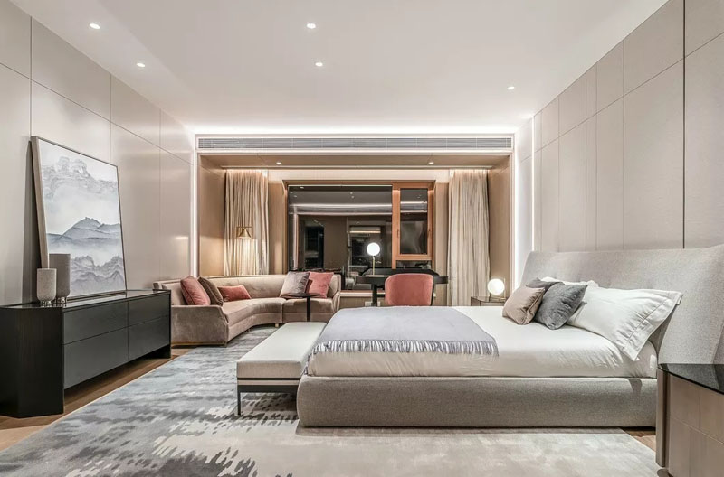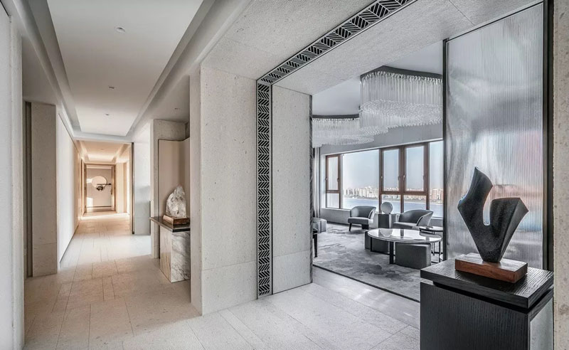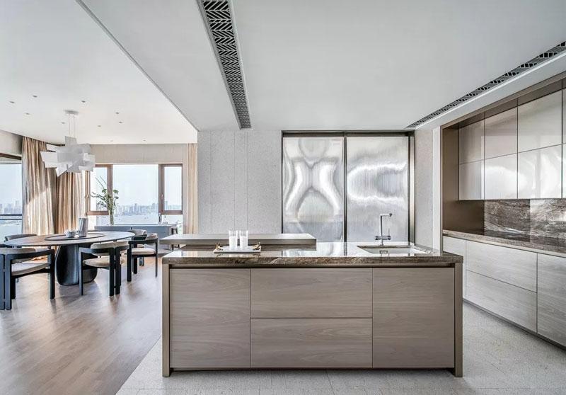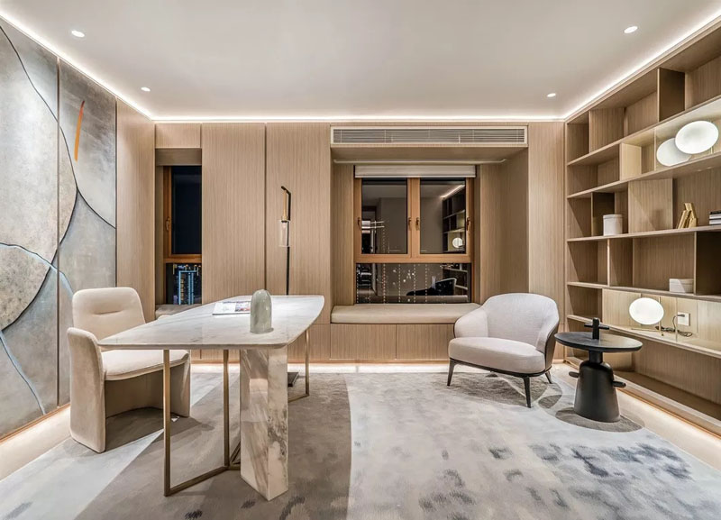 2、新中式风格讲究空间的层次感,在需要隔绝视线的地方,则使用中式的屏风或窗棂、中式木门、工艺隔断、简约化的中式“博古架”,通过这种新的分隔方式,单元式住宅就展现出中式家居的层次之美。再以一些简约的造型为基础,添加了中式元素,使整体空间感觉更加丰富,大而不空、厚而不重,有格调又不显压抑。